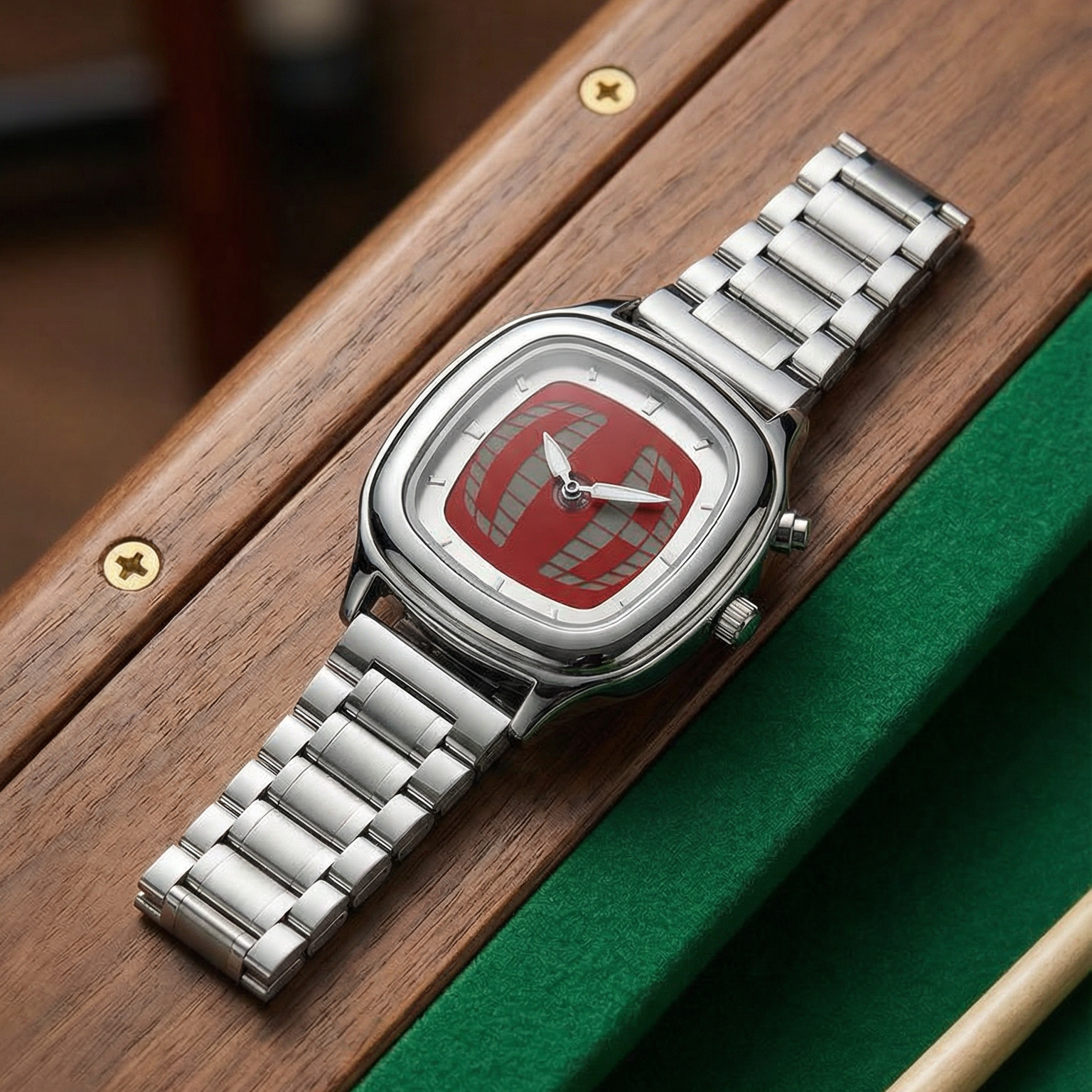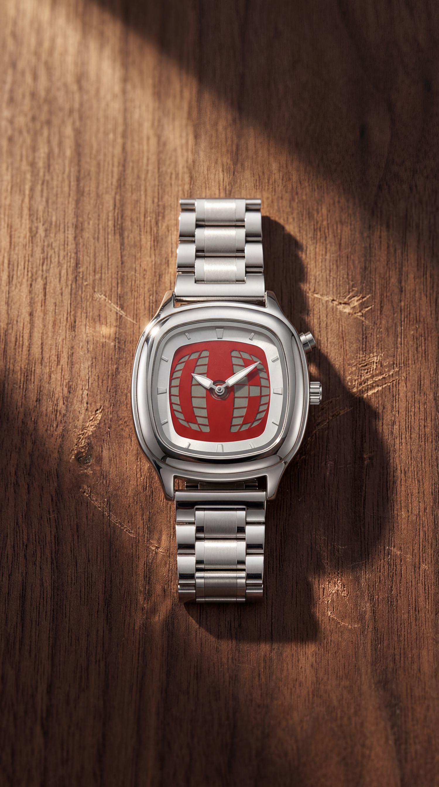 Edelstahlband, schlankes Profil, sitzt clean am Handgelenk. Gemacht für jeden Tag und für die Nächte, die länger werden.