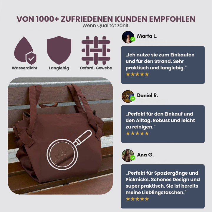 Gefertigt aus einer speziellen Mischung aus Polyesterfasern und Nylonfasern (Oxford-Gewebe), verfügt sie über eine besonders enge Webstruktur, die wie ein Schutzschild wirkt, Wasser wird abgewiesen und deine komfortable Unterlage bleibt geschützt.