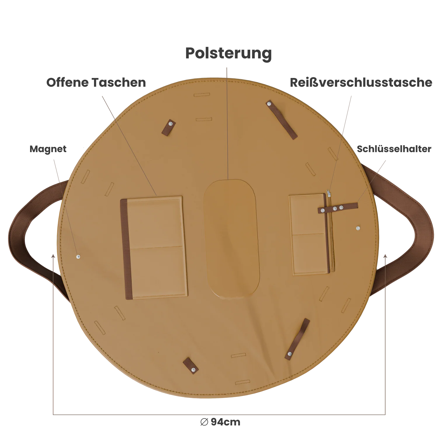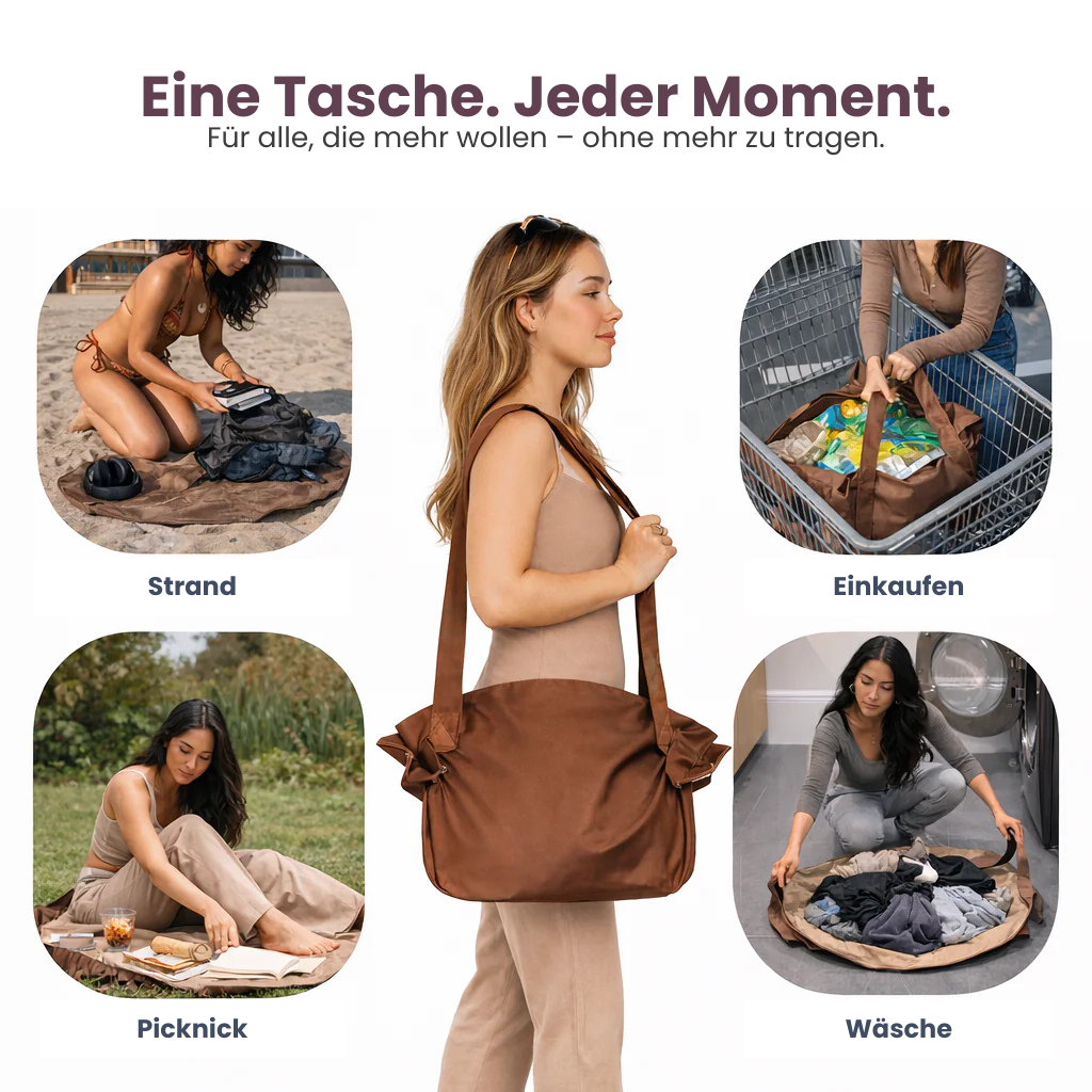 Weit mehr als das. Die Orbis Plica ist Schultertasche, Einkaufstasche, Picknickunterlage, Wäschesammler und Spielmatte in einem – einfach aufziehen und der 94cm Kreis verwandelt sie in eine vollwertige Multifunktionsfläche.