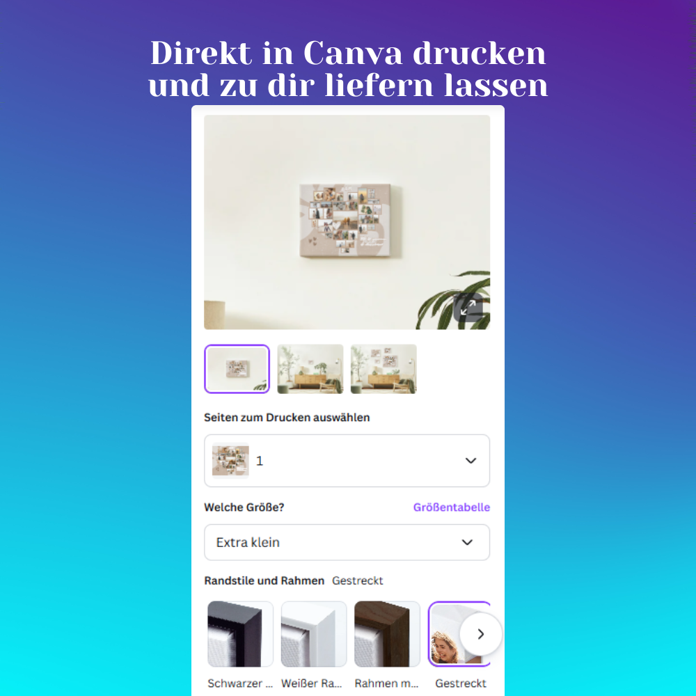 Ja, du kannst es direkt über Canva Print bestellen und liefern lassen, oder als PDF herunterladen und selbst drucken.